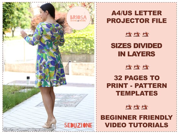 V Neck Dress Pattern Pdf Printable Sewing Pattern Dgpatterns